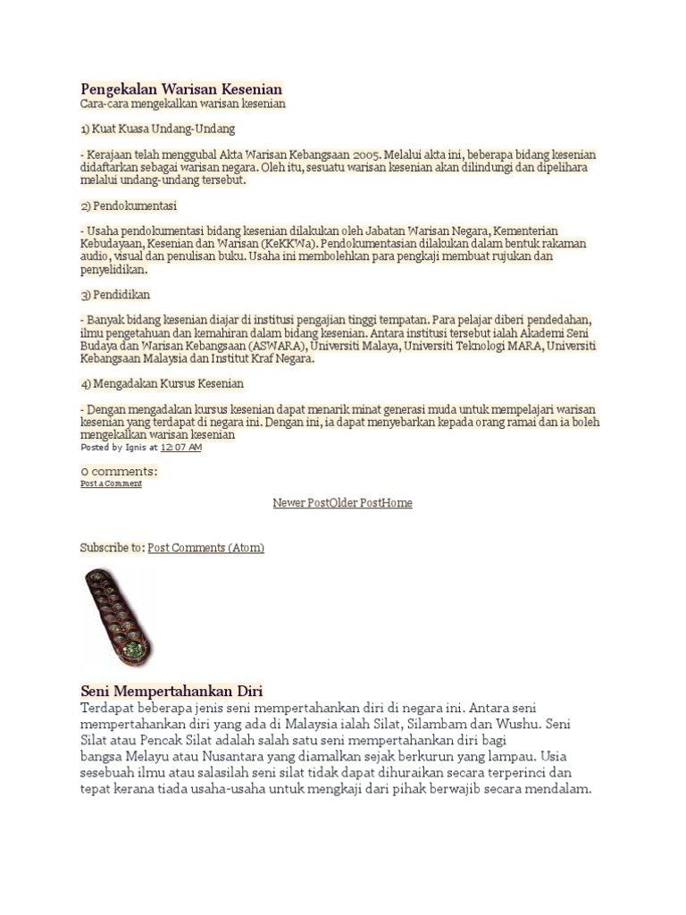 Anugerah seperti ini mampu menggalakkan masyarakat. Go to our diagnostics page to see whats wrong. Cara-cara untuk memperkenalkan warisan kesenian 1 Pertandingan Aktiviti Kesenian - Penganjuran pertandingan aktiviti kesenian dapat memupuk minat generasi muda terhadap warisan kesenian.